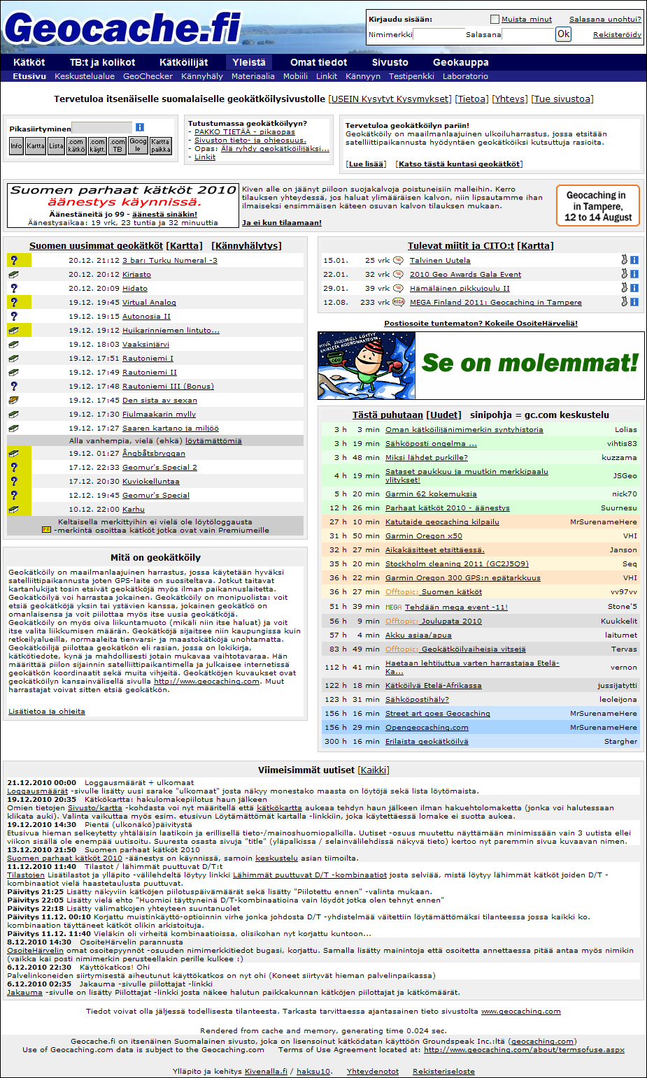 Alla kuvankaappaus geocache.fi -sivustosta 21.12.2010